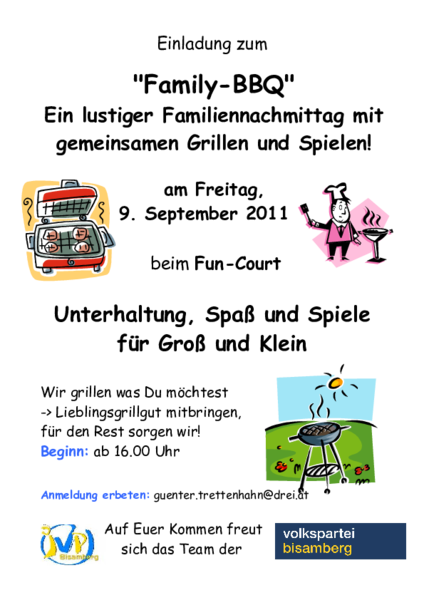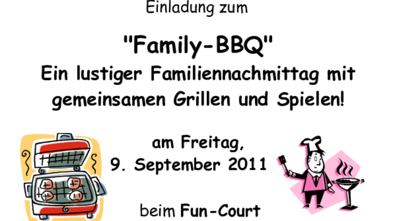 Am Freitag, den 9. September laden wir zum gemeinsamen Grill- und Spielfest, dem "Bisamberger Family-BBQ" beim Fun-Court herzlich ein!